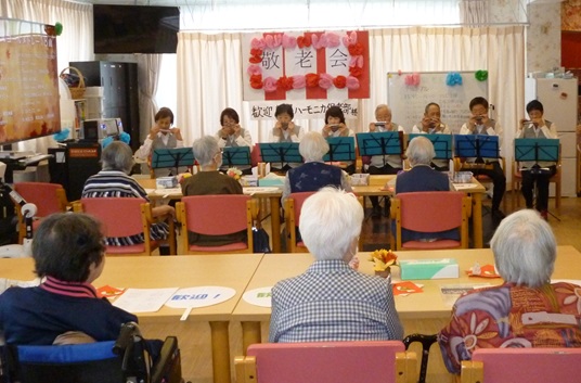敬老会のイベントとして昔の歌、童謡、唱歌など13曲を演奏しました。
